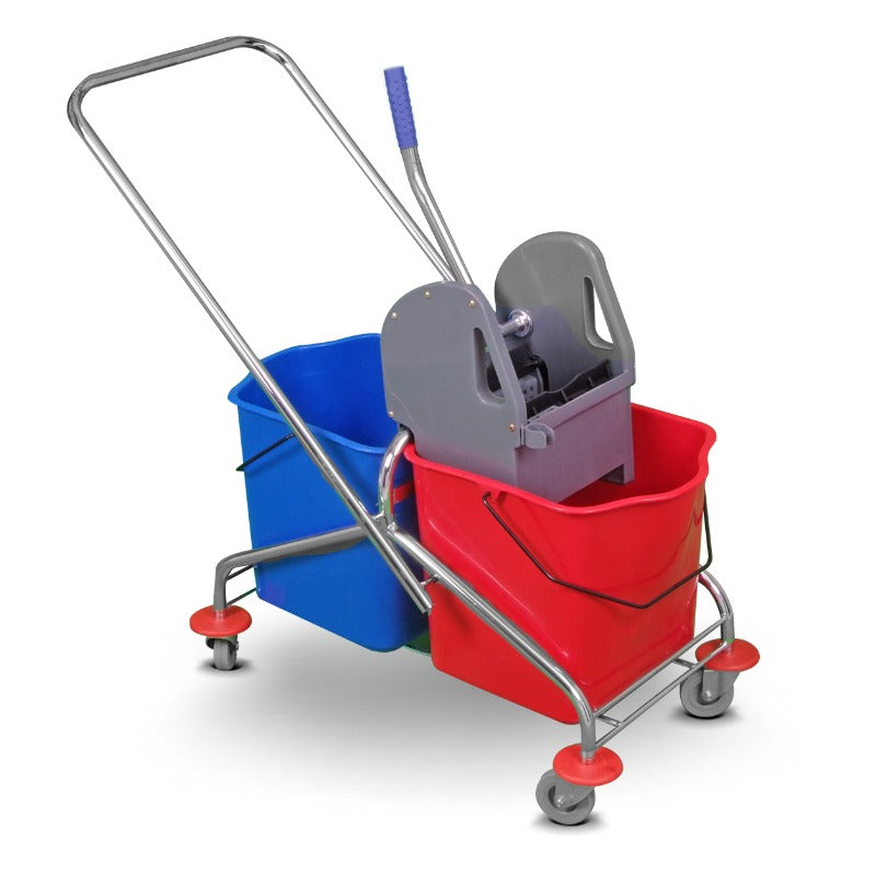 Double bucket trolley (chrome ) with 2 X 23 buckets litre