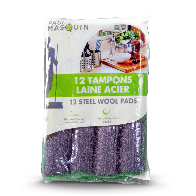 Set of 12 Steel Wool Scourers. For all difficult cleaning. Rinse with clean water before and after each use, Don't use dry or on fragile surface or on adhesive coatings.
