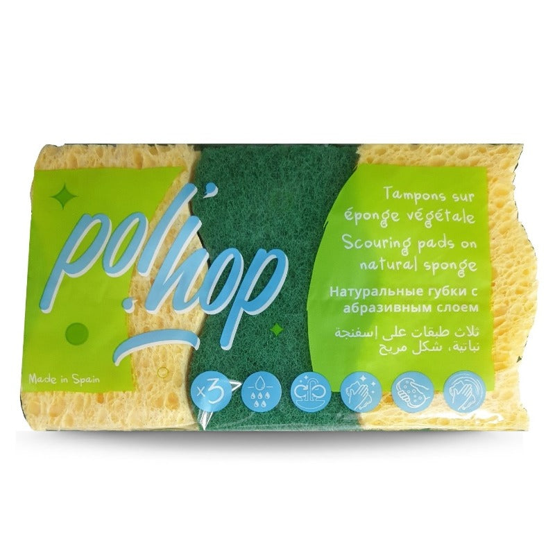 Set of 3 Scouring pad on Natural sponge - for cleaning, scraping and wiping, Rinse with clean water before and after each use, not to be used on quick-drying surfaces and non-stick coatings.