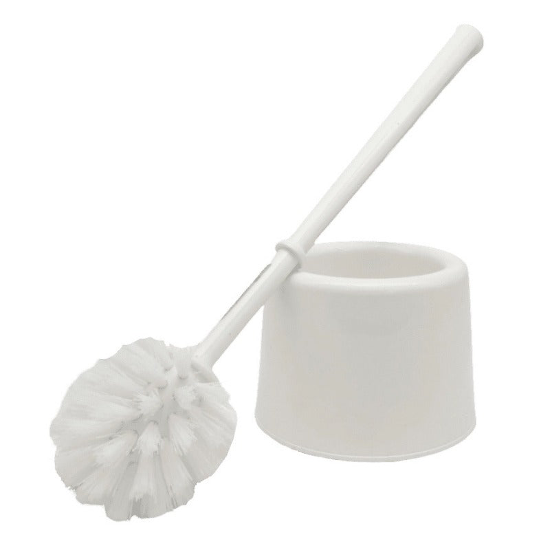 Toilet brush with a large handle and tough, chemical-resistant fibers for a perfect toilet cleaning. The base allows you to put the brush inside.