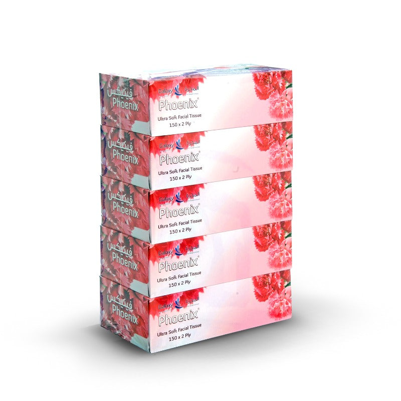 Ultra Soft Facial Tissue ( 5X150 x 2ply ) , pure white and hygienic.