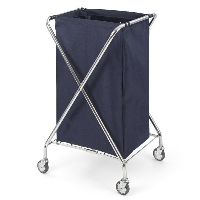 Chromed Laundry basket with ø 80 mm wheels and thread guards, with 180 L plastified bag.