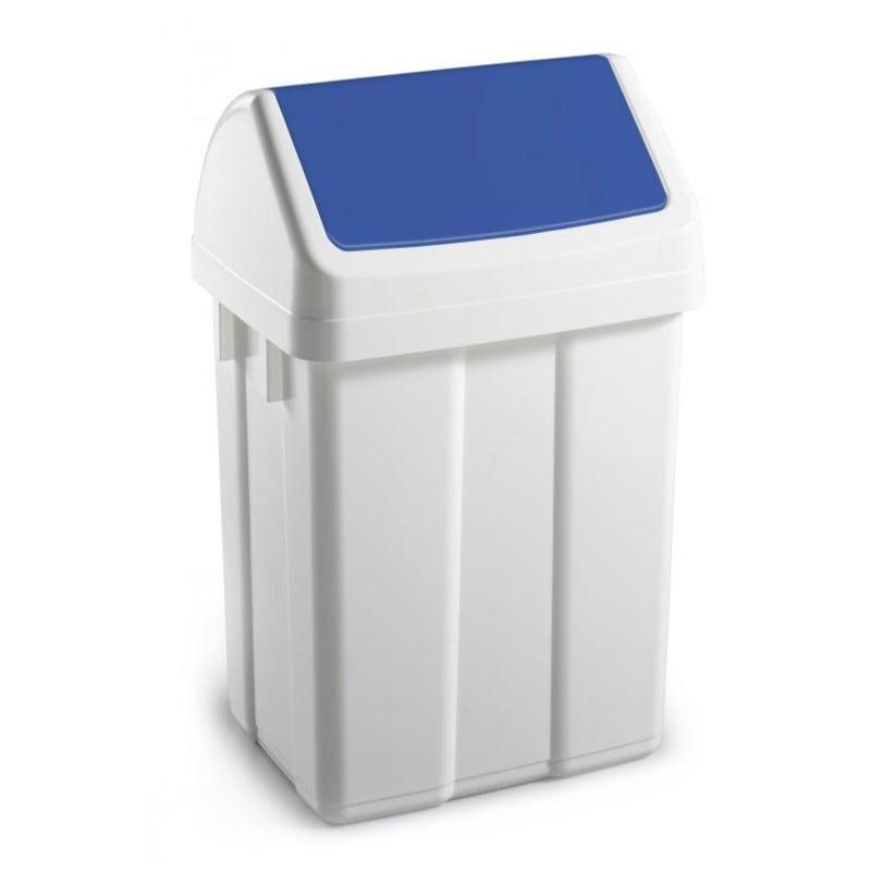 Waste bin made of plastic with blue movable lid